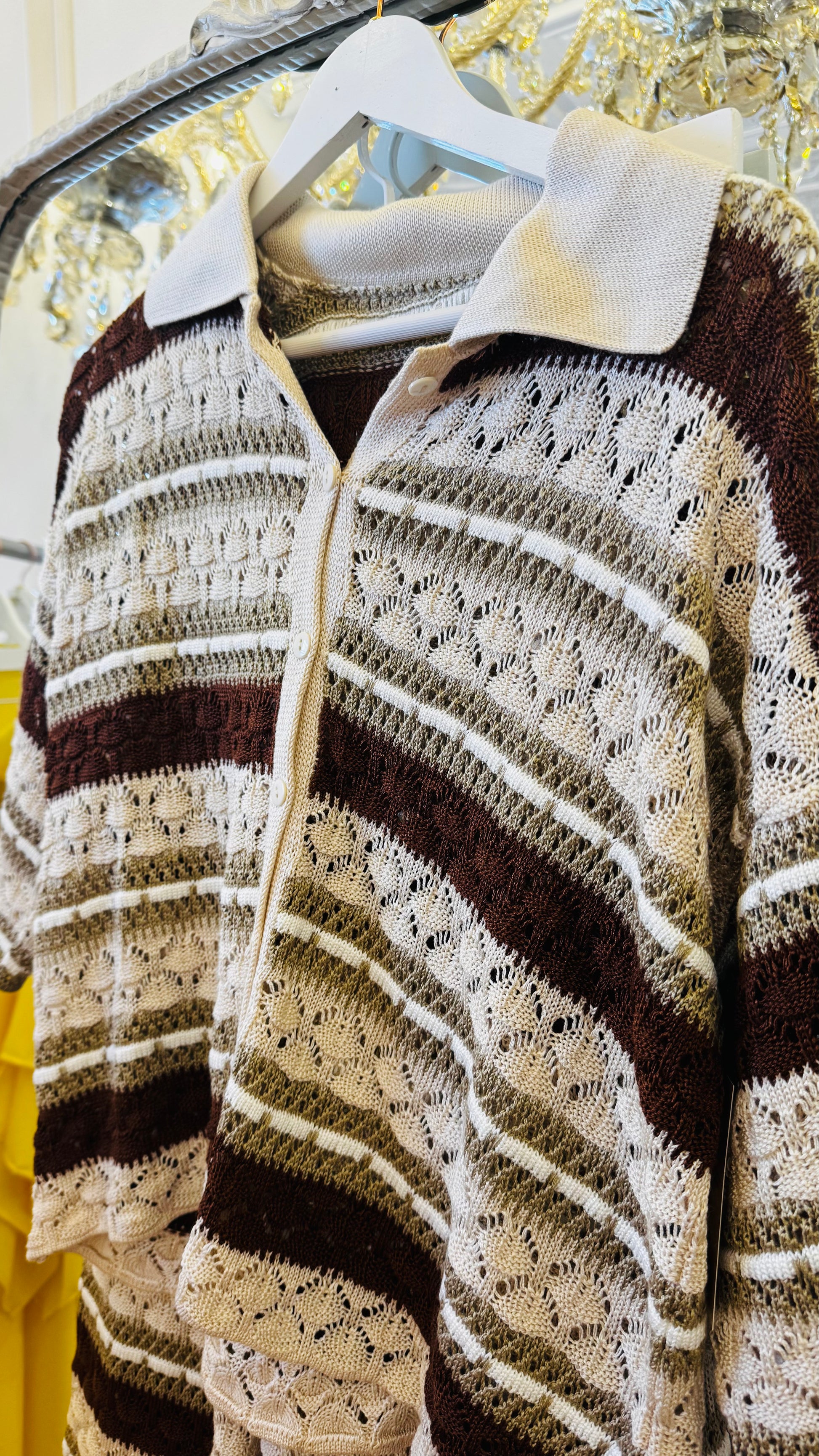 Two-piece crochet set: collared shirt + wide-leg pants